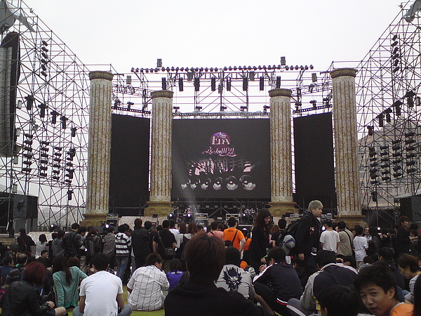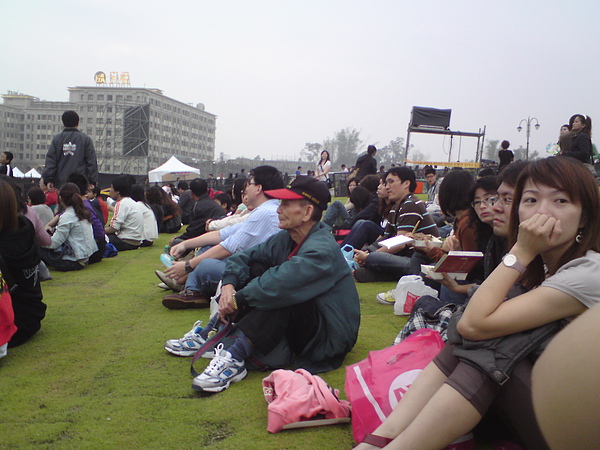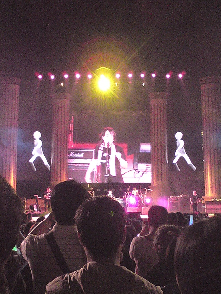 今天到義大世界聽「音躍潮拜」演唱會,三個多小時,從熱狗開場到楊乃文再到伍佰&China Blue,只能說,還蠻值回票價的(票價也只有500塊),音響雖然有點刺耳,但整體音場的感覺還算不錯;聲光和煙火就不用提了,重點是戶外的草地實在是太舒服,一開始進場等待的時候有種在野餐的錯覺,沒錯就是野餐,雖然有說不能帶外食進場,但是熱情的南部鄉親還是很優閒的拎著大小吃,快樂的攜家帶眷來等表演,草地還是有點類似羅馬廣場的設計,舞台在最低點,就算前面的人都站起來,也還有空隙可以看得到表演,也幸好今天天公作美啦,昨天下一天的雨,今天只是陰天,沒有濕淋淋的,真是好加在。