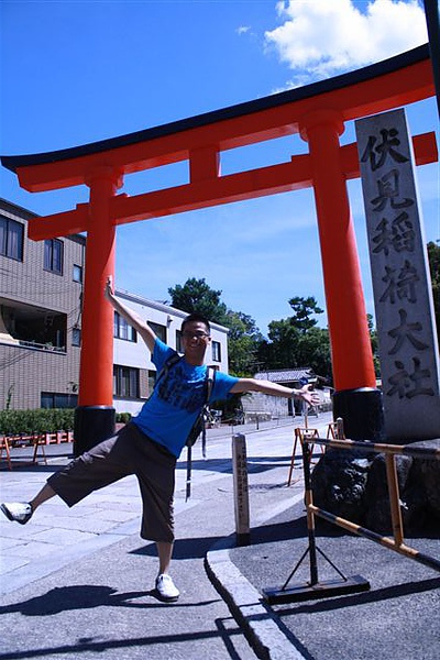 我們造訪的時候,剛好神社入口建築在整修,沒辦法看到全觀,不過我的重點可是狐狸和鳥居啊…所以馬上就蹦蹦跳跳的繼續往上走,在這邊要提醒一下,這裡的千鳥居和神社範圍可是延伸整個山頭,基本上到這裡就跟走登山步道很像,所以建議要來這裡的話可以早一點來(傍晚來可能會有點恐怖,因為滿山的狐狸像...),享受一下早晨山林的清涼,而且一定要穿一雙好走的鞋子!