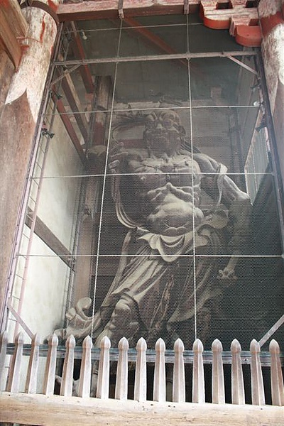 才沿著石板路走到東大寺門口,我們兩個就先傻在大門前,因為大門不但是木造建築,光門柱的粗壯程度就相當驚人,這應該也只有古代才有這種巨木,更不用說兩邊木刻的大型門神立像,我們大概抬頭足足看了有十分鐘,才繼續往裡面走去。