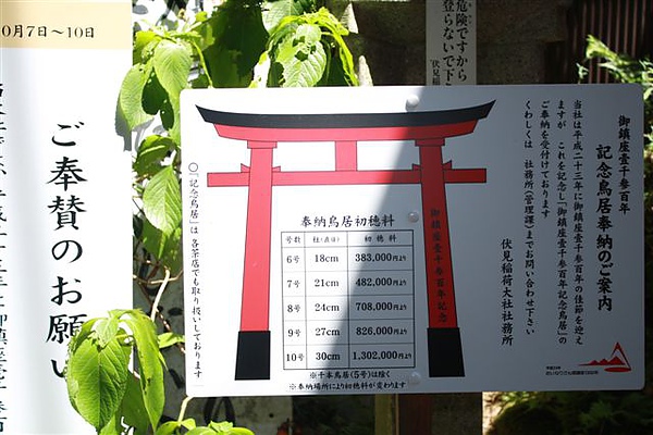 (這就是奉納鳥居的料金表啦!老吳,加油,好嗎? XD)