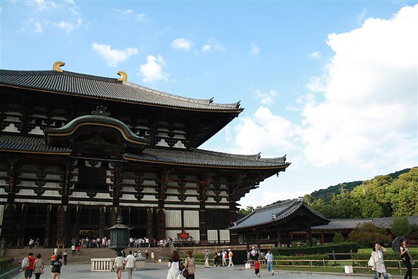 東大寺其實是佛教東傳的代表建物,詳細歷史就請大家上網姑狗啦!一入東大寺,就是高抵屋頂的大佛像,造像相當細膩精美,我們沿著參觀路線繞了一圈,讚嘆以前工藝精進技術和日本的保存技巧,雖然木造建築相當容易著火,不過日本的古蹟修繕和保存的技術相當純熟,讓人要對他們的努力豎起大拇指。