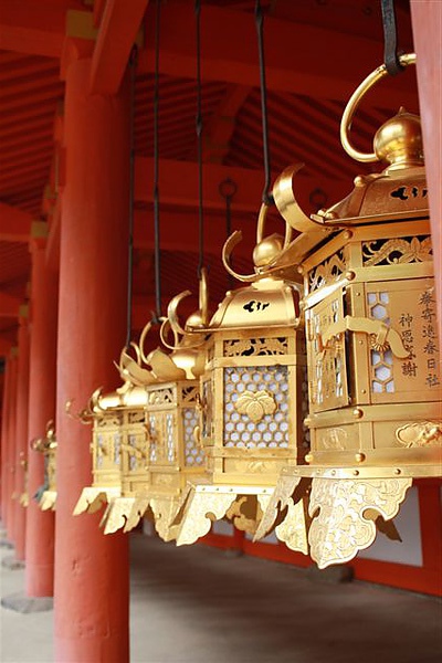 大概是為了配合奈良遷都紀念,春日大社裡掛滿了信徒供奉的銅製燈籠,目前還在開放供奉的樣子,到時候整串燈籠亮起來場面一定相當壯觀,不過因為目前還沒有什麼活動,神社裡面很多門廊是關閉的,比較可惜沒看到甚麼東西。