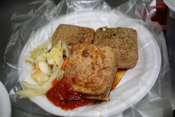 另外,羅東夜市裡最讓我念念不忘的就是阿灶伯的當歸羊肉湯,那次喝到簡直驚為天人,中藥的香和鮮嫩的羊肉相得益彰,而且不油膩,讓我魂牽夢縈了好久。這次去因為逢周六,遊客很多,我們排了20分鐘才吃到,可是一上桌我就皺眉頭,怎麼本來清澈的湯上面浮了一層油,雖然湯頭還是很香,不過吃到後來越覺得油膩,我一碗凸了好久。他們的臭豆腐印象中也是外酥內軟很多汁的那種,老吳上次還一次喀掉兩盤,沒想這這次去臭豆腐完全變了一個樣子,一樣是外酥內軟,可是...就變得比較普通。唉~不知道是不是人太多了,我只覺得整趟吃下來讓我有點傷心,找不到記憶中的味道阿~(因為周末人太多我就沒有拍照了,放兩張兩年前拍的照片讓大家聞香一下,若要看看現在的,可以看看其他部落客的分享喔)