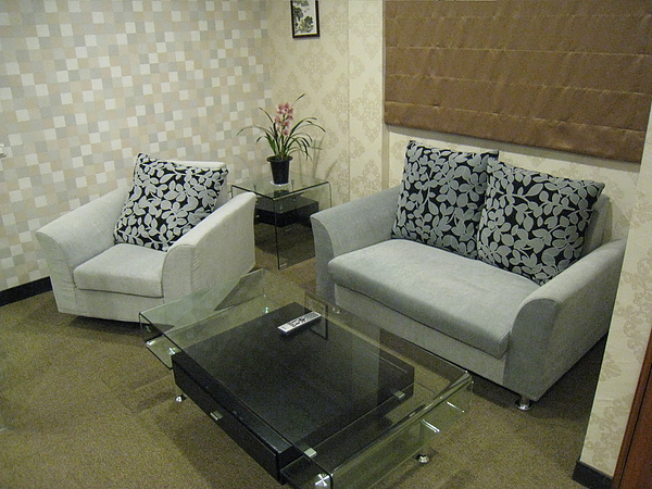 (不僅是雙人大床,還有小客廳的空間,裡面放的還都是真花阿...)
