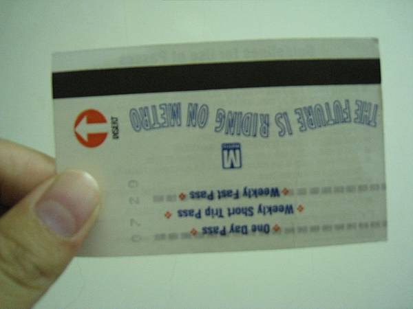華盛頓的地鐵票長得很薄,就是一張紙上面貼了一張磁條,根據我朋友的說法,非常容易消磁,所以攜帶的時候要小心,盡量不要跟手機之類的東西放在一起,要是不小心真的消磁了,只好去找地鐵站人員求救,最好的方式就是保留當初購買的收據~
