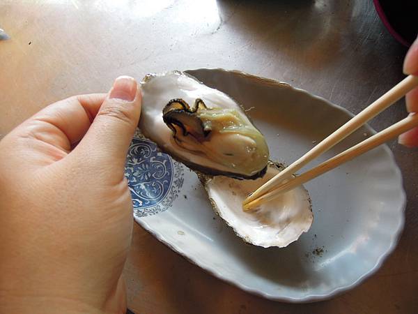 (肥美的蚵仔,今年蚵仔很貴,吃多算賺到吧我想...不過烤的火有點小,烤蚵需要一點耐性~)