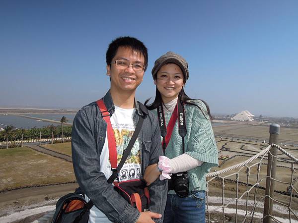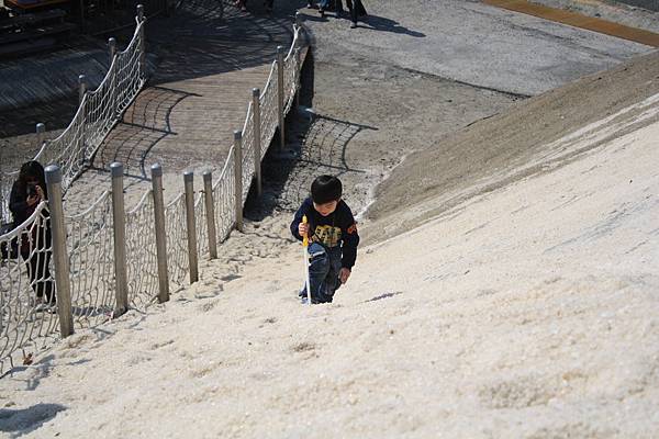 鹽山其實是早期台鹽採鹽所堆疊出來的,現在七股已經不採鹽了,但鹽山仍被保存下來,做為觀光景點,一旁還有長得像金字塔的台鹽博物館,我們沒有進去,只有在鹽山山頂遠遠的眺望一下(明明就沒有很遠),雖然鹽山現在看起來有點灰灰黑黑的,可是還是讓大小朋友在「登頂」過程中玩得不亦樂乎,加上那天天氣又很好,在山頂欣賞風景也是不錯的。