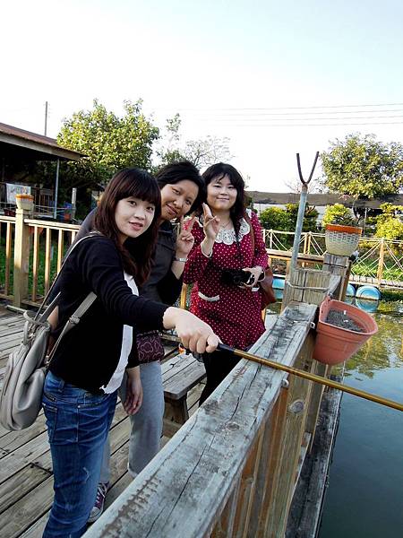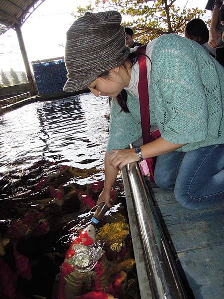 大夥下午決定更改行程,到離頑皮世界不遠的錦鯉之鄉,這裡的門票一人一百元,園區內有釣魚、釣青蛙、撈金魚、還有招牌的餵錦鯉喝ㄋㄟㄋㄟ的活動可以玩,一張門票可以兌換魚飼料或者這些活動的工具,我們去的人多,所以玩起來很划算。