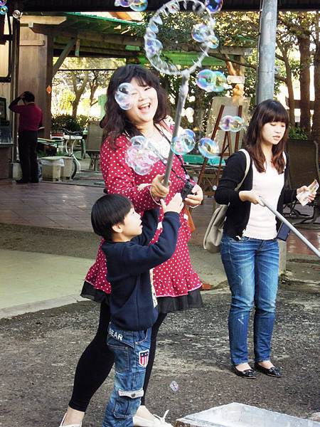 (園區內還有這種簡單的吹泡泡遊戲,一樣讓一群人玩得超開心)
