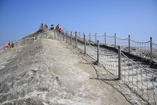 (踩著鹽堆登頂,大概就跟在沙丘上走路差不多,當然一旁也有階梯步道可以走)