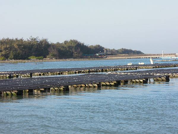 因為周六老吳還要上半天班,所以等到中午過後我們才從高雄出發,第一站先到七股坐船遊潟湖,這是近年來七股很流行的觀光行程,老吳幫大家訂的是當地第一家開闢觀光型成的龍海號(一直很想把他們名字打成「龍神號」,這好像是某個小時候卡通的角色...),航班有固定的時間,在等待開船之前,可以在候船處烤新鮮的蚵仔,號稱吃免驚,我們到達的時候,因為老吳的同事已經先到了一批人,手腳很快的已經烤了好幾批,我們一坐下來我就開始大快朵頤,吃素的老吳則是在一邊東拍拍西拍拍。