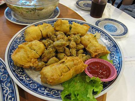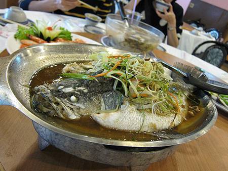 晃一下就到了中午,我們到預定的海鮮餐廳吃完中餐,餐廳名稱叫做溪南春休閒渡假漁村,同樣離我們玩樂的地方不遠,這裡好像原本是好幾座魚塭改建的,園區頗大,停車也很方便,不過除了餐廳本部之外,園區內其他設施都有點失修的fu,如果好好整建的話,是很不錯的景觀餐廳~雖然景觀有些差強人意,但這裡的餐點挺不賴,主要是以海鮮合菜為主,餐廳空間很大,當天有公司團體也在這裡用餐。我們事先訂了兩大桌,大概是一桌十道菜吧(含水果)!大夥吃得飽嘟嘟,因為太餓顧著搶食,我沒拍到食物照片,借用一下老吳好同事立玲的照片,讓大家聞香一下,基本上海鮮都挺新鮮好吃的。