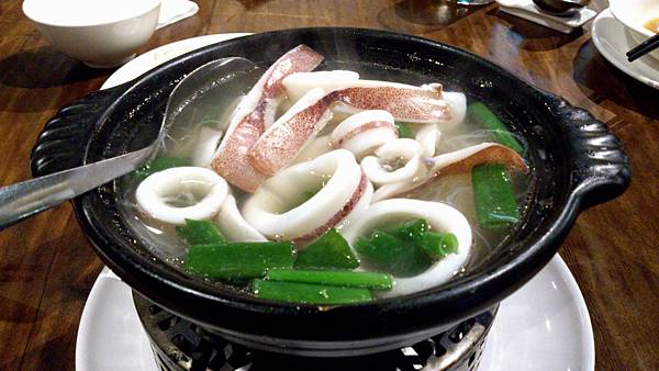 米粉湯下頭還有小火爐持續加溫,熱熱的湯真是舒服又暖胃,上頭的小卷又肥又新鮮,雖然湯頭是很簡單的高湯加蔥段,但因為海鮮新鮮,喝起來非常鮮甜,而且小卷好彈牙,我個人最喜歡這種有口感的食物了~(轉圈)