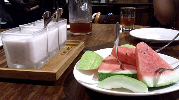 終於來到最後一道甜品和水果,這時候真是飽到有點站不起來,幸好沒真的點白飯來配,芋頭西米露扎扎實實,還吃得到芋頭!而且一點都不甜膩,讓我這個平常不吃甜芋頭的人很快的就解決掉這一杯,滿足的享受完這一餐。雖說沒有做功課,但這些菜式真的很值得,也讓人無須為了點菜傷腦筋,也算是一次有趣的用餐經驗。