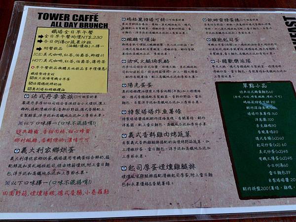 我跟老吳是嚴重的西式早午餐愛好者,而且信奉早餐一定要吃得又巧又飽的原則。因此我們不愛每樣菜式分明的簡單風格,卻喜歡整盤組合漂亮、量多、有蔬果點綴的餐點(好浮誇的兩個人 XD ),最近在高雄又發現一間新的早午餐店鐵塔‧輕咖啡館,位於三民區的河堤邊,餐點非常符合我們的喜好,用餐環境也很不錯,就算是平日去店內人也不少。