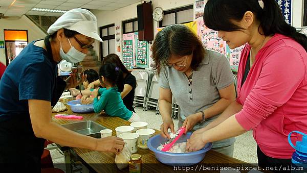 (社區的可愛大姊先教大家標準年糕製作的SOP)