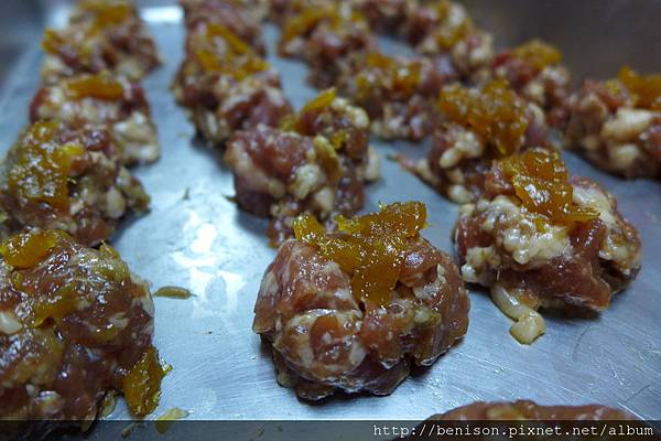 (一顆顆加了鳳梨的肉圓餡)