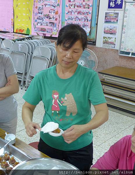 (號稱社區林志玲的媽媽教大家做肉圓,手勢真是一百分~~)