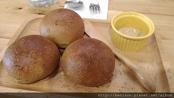 (幾次帶著家人朋友去吃大家都愛熱呼呼的麵包,抹醬是一絕,當天吃的是咖啡醬,很香濃喔~)