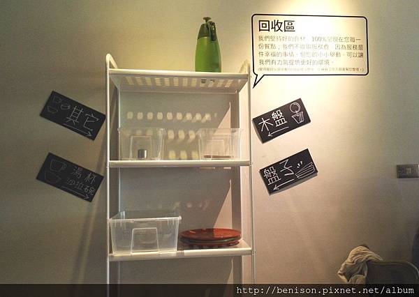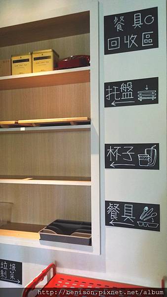 雖然我們到店的時候,店內座位尚未全滿,但我們等上菜還是等了近20分鐘,因為全部都是新鮮現做,如果是肚子極餓的狀態下去用餐要有心理準備啊,對了,因為店內強調不收服務費,所以一切的服務由客人自助,點餐完老闆會給叫號機,等叫號機震動亮起後再下樓去取餐,用餐後,也請顧客自己分類把餐具放回一邊的回收架上。我還記得用餐後我去放餐盤時,就像回到學校餐廳用餐,而且客人們幾乎都有乖乖照指示放好唷~